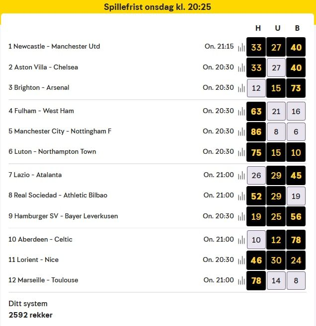 Det er nesten noe høytidelig over å åpne en tippekupong. Som å brette ut et lite kart over fremtiden, fullt av håp, drømmer og skjøre sannsynligheter. Hver kamp er en historie som ennå ikke er skrevet, hvert kryss et stille løfte om spenning, hvert tegn en liten trosbekjennelse til fotballens evige uforutsigbarhet. Tippekupongen fra Norsk Tipping er ikke bare rekker og prosenter – den er en invitasjon til å tro, til å håpe, og til å leve seg inn i helger som kan bli legendariske.