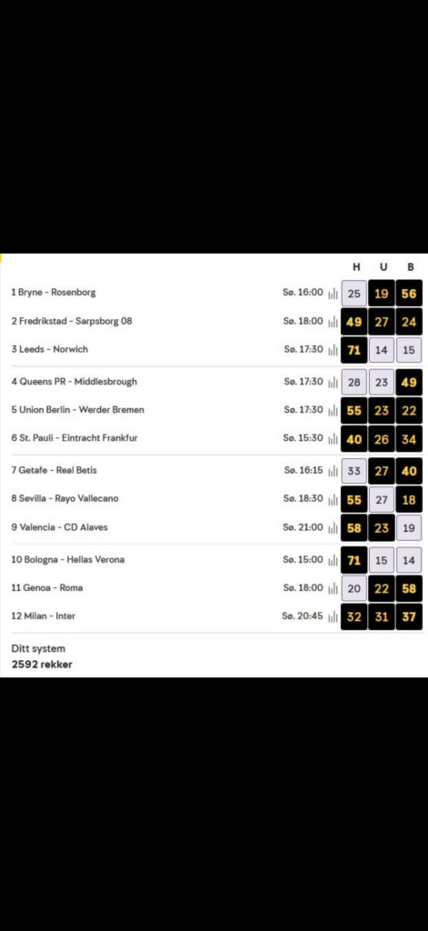 There is something almost solemn about opening a betting slip. Like unfolding a small map of the future, full of hopes, dreams and fragile probabilities. Every match is a story that has not yet been written, every cross a silent promise of excitement, every sign a small confession of faith in the eternal unpredictability of football. The betting slip from Norsk Tipping is not just ranks and percentages – it is an invitation to believe, to hope, and to live into weekends that could become legendary.
