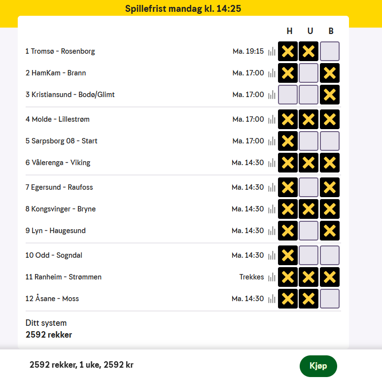 The betting coupon at Norsk Tipping