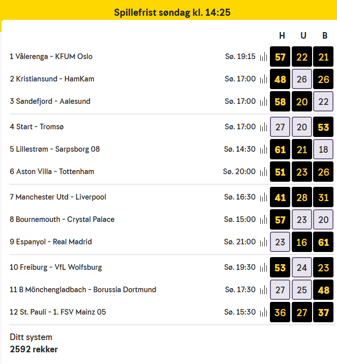 The betting coupon at Norsk Tipping